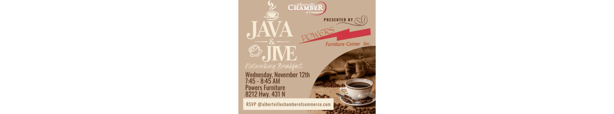 Start your morning with Java & Jive, a relaxed networking event where local professionals can connect, collaborate, and grow together. Step out of the office, enjoy casual conversation, and build meaningful relationships with other business leaders and community members — all over a cup of coffee!